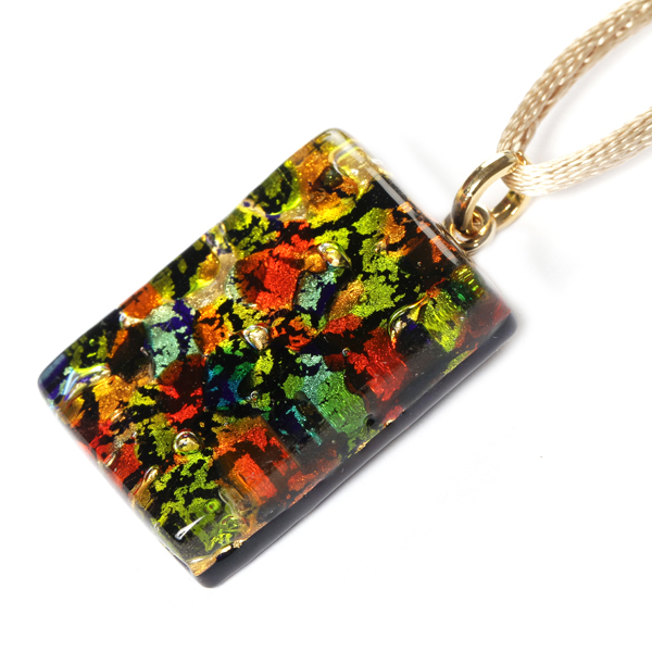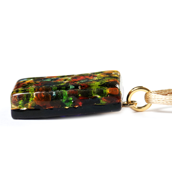 Pingente fundo ouro com algas amarelas flores amarelas e pretas